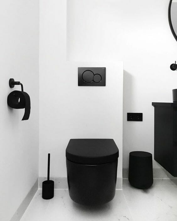 Use white furniture on a black wall. Tile or paint a black wall or floor and add white hanging vanities to modernise your room. Wall-hanging basins and toilets free up room and will make sure your bathroom looks modern and fresh!